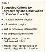 Suggested Criteria for Polypectomy and Observation for Cancer in a Polyp