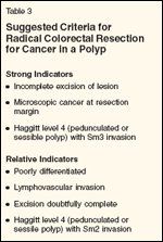 Suggested Criteria for Radical Colorectal Resection for Cancer in a Polyp