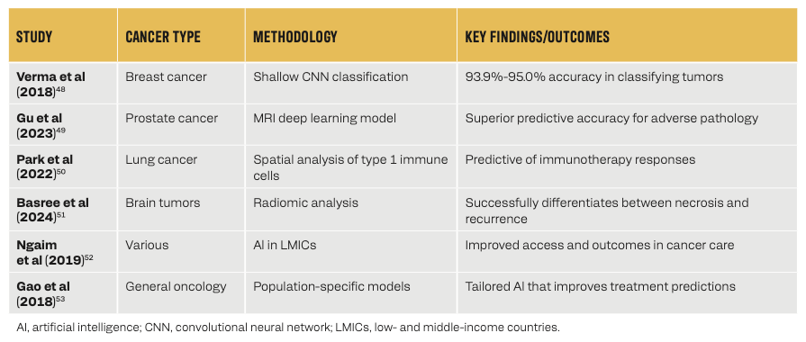 TABLE. Key Studies Employing AI Methodologies Across Various Cancer Types48-53