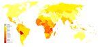Age-standardized death rates from cervical and uterine cancer by country (per 100,000 inhabitants, WHO 2004 data); source: Lokal Profil, Wikimedia Commons