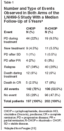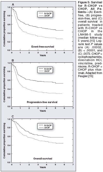 15. Feugier P, Hoof AV, Sebban C, et al: Long-term results of the R-CHOP study in the treatment of elderly patients with diffuse large B-cell lymphoma. J Clin Oncol (in press).