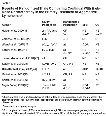 23. Kaiser U, Uebelacker I, Abel U, et al: Randomized study to evaluate the use of highdose therapy as part of primary treatment for “aggressive” lymphoma. J Clin Oncol 20:4413- 4419, 2002.