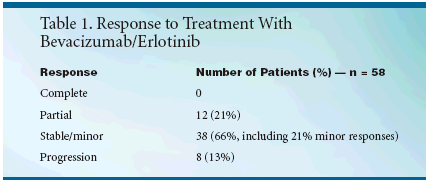 Patients were evaluated for responseafter 8 weeks. The investigators hadoriginally intended to continue treatmentfor 12 months, but the originalstudy protocol was amended to permitcontinuation in patients untildisease progression.Dr. Hainsworth reported data for58 treated patients with median follow-up of 11 months. In contrast toseveral other trials, 68% had no priortreatment. Eighteen percent had pre-paviousinterferon, 8% had previous interleukin-2 (IL-2) plus interferon, and6% had previous IL-2. Fifty three patientshad previous nephrectomies.Sites of metastases included lungs (41),liver (17), bone (15), adrenals (10),and other sites (14)."Nine of 12 patients with partialresponses and 10 of 12 with minorresponses [20% to 30% decrease intumor size] remain progression-free,"said Dr. Hainsworth (see Table 1). "Atotal of 42% of patients had measurabledecreases in their tumor size.Twenty six of the 38 stable or minorresponse patients remain alive and ontreatment for more than 6 months.""Responses have been seen in allareas of metastases and in most casesincluded reductions of more than 50%.For example, one patient had innumerablebilateral lung metastases thatcleared substantially with treatment, "Dr. Hainsworth said.Twelve MonthPFS of 50%Six-month progression-free survival(PFS) was 67%, and 12-month PFSwas 50%. Six-month overall survivalwas 92%, and 12-month overall survivalwas 81%.Treatment was tolerable in mostpatients but with a number of minorside effects, Dr. Hainsworth noted.Twenty-five patients (63%) had nograde 3 or 4 toxicity. Only two patientsstopped treatment because oftoxicity, both as a result of rash.Grade 3 or 4 toxicity included rash ineight patients (13%), diarrhea in six(10%), and nausea and vomiting in six(10%). Grade 1 or 2 bleeding occurredin 24 patients (39%) and grade 3 or 4bleeding was reported in 3 patients(5%)."The number of bleeding occurrencesmay seem out of proportion.We were somewhat concerned aboutbleeding, which has been a problemwith bevacizumab, but most instanceswere minor hemorrhoidal bleeding orminor nosebleeds. We feel that this isprobably not a true level of treatmentrelatedtoxicity," Dr. Hainsworth said."Most of the side effects were the rashand diarrhea typical of EGF receptorinhibitors."Good MajorResponse RateThe investigators concluded thatbevacizumab/erlotinib produced amajor response rate of 21% in thisgroup of 58 evaluable patients withadvanced renal carcinoma. An additional45% of patients had stable diseaseor minor response for more than6 months, and Dr. Hainsworth saidthat an increasing number of patientshave now maintained this result formore than 12 months with continuedtreatment. One-year PFS was 50%,and overall survival was 81%."This regimen appears to be one ofthe most active and best tolerated regimensin the treatment of advancedrenal carcinoma. The activity of thiscombination of two targeted agentsappears greater than the activity ofeither agent used alone in clear cellrenal carcinoma. Comparison of thisregimen to standard regimens is certainlyindicated. The results of thistrial also support further developmentof combinations of targeted agents toexploit tumor-specific biologicmechanisms in renal cancer and othermalignancies," Dr. Hainsworthconcluded.