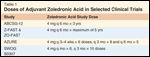 Doses of Adjuvant Zoledronic Acid in Selected Clinical Trials