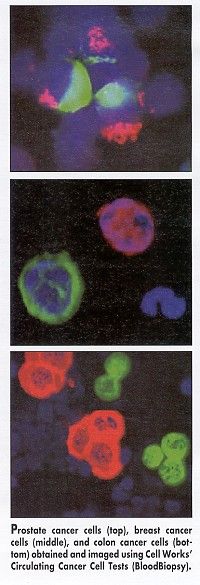 Circulating Cancer Cell Tests are currently available from Cell Works for prostate, breast, and colon cancer, and the company is developing tests for other cancers, including gastric, liver, kidney, and lung cancer, and melanoma. The test is intended to be used on patients with known cancer etiology and is not a screening test. The company licenses the patented technology for the tests from Johns Hopkins University.