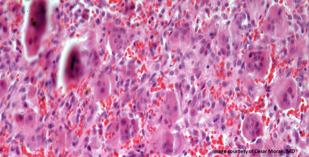 A 38-year-old woman with a history of hyperparathyroidism presents with a lesion in the left humerus bone. According to the pathology slide, what is your diagnosis?