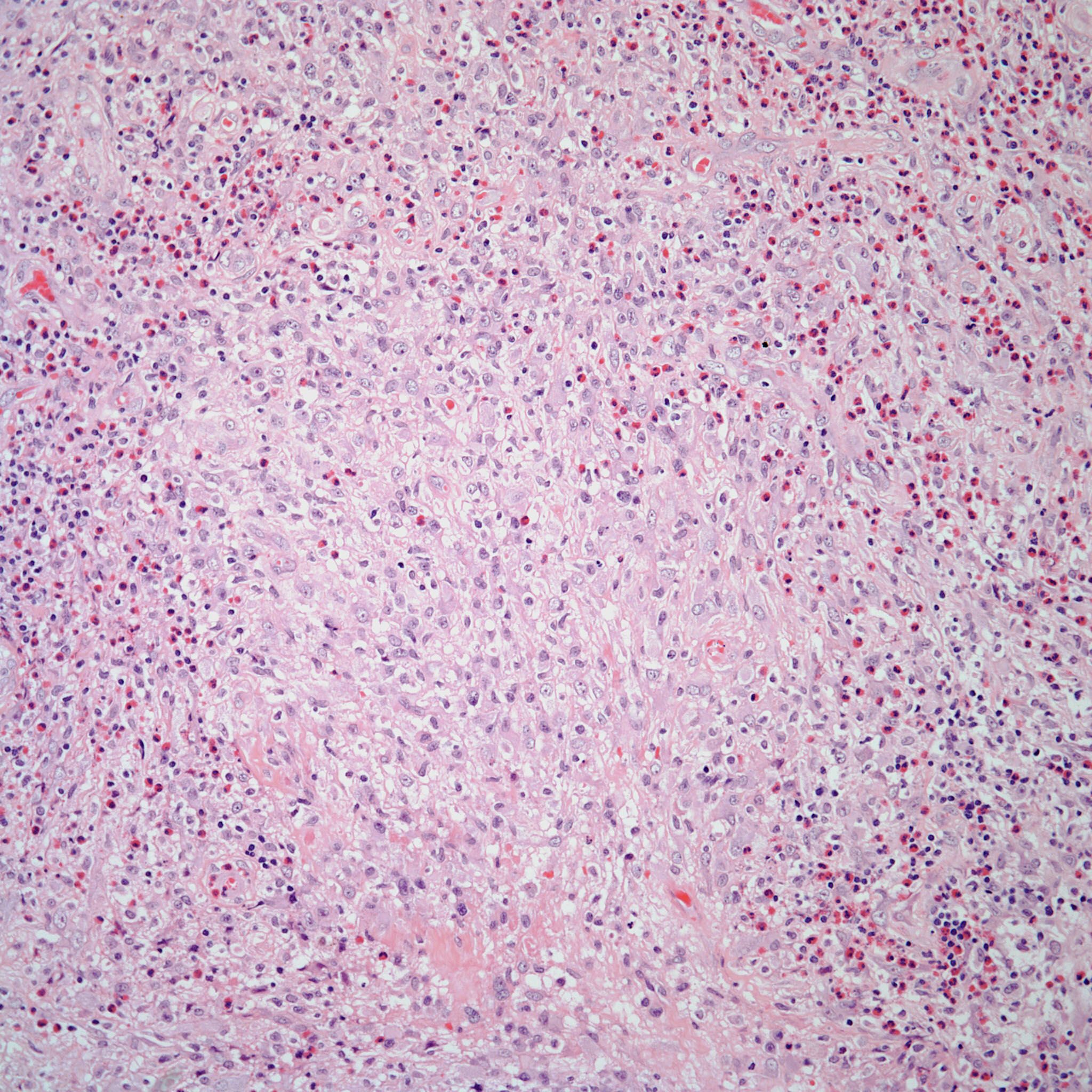 A 36-year-old woman presents with history of previous breast implants and induration of the left breast. Imaging does not show a well-defined mass. A surgical biopsy is performed. What is your diagnosis?