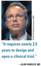 "This means that it requires nearly 2.5 years to design and open a clinical trial," Dr. Sandler told Oncology News International. "Imagine the difficulty with this. Science moves quickly, and something that was a good idea in 2006 may not be so good in 2009."
