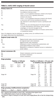 Unlike most other cancers, in which staging is based on the anatomic extent of disease, the American Joint Committee on Cancer (AJCC) and International Union Against Cancer (UICC) staging of thyroid cancer also takes into consideration patient age at the time of diagnosis and tumor histology (