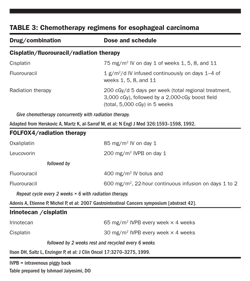 Chemotherapy Phase I and II studies have demonstrated moderate response rates to taxanes in esophageal cancer. Taxanes in combination with platinum compounds and fluoropyrimidines are being tested in regimens with irradiation.