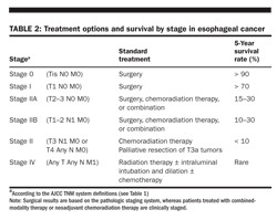 Treatment options for the various disease stages are given in Table 2, along with 5-year survival rates.