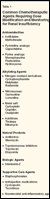 Cancer chemotherapy will be provided to an increasing number of patients with ESRD. However, data regarding the optimal use of chemotherapeutic agents in this patient population are sparse. For several drugs, case reports indicate that many ESRD patients can tolerate standard treatment. Table 4 summarizes our general chemotherapy dosing recommendations based on a review of available case reports.