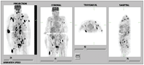 In sum, altered metabolism, including increased glycolysis with enhanced glucose consumption, is consistently observed in various cancers. The Warburg effect has formed the basis of positron emission tomography (PET) scanning with fluorine-18 fluorodeoxyglucose (18F-FDG), which is now increasingly being used in the diagnosis and prognosis of various malignancies. PET exploits the increased glucose uptake by malignant cells compared with most normal cells; FDG uptake is, therefore, directly proportional to tumor burden.[26] Figure 2 shows a PET scan of a patient with large B-cell lymphoma of the skin; the scan demonstrates numerous active metabolic lesions with increased uptake of glucose. Two large independent clinical myeloma studies demonstrated the early appearance of PET-positive lesions (in 76% of 192 patients tested), indicating an early reliance on elevated glucose metabolism[27,28]; more importantly, both studies demonstrated that the persistence and extent of PET positivity correlated with lower event-free survival,[27,28] underscoring the usefulness of targeting aberrant glucose utilization in myeloma.