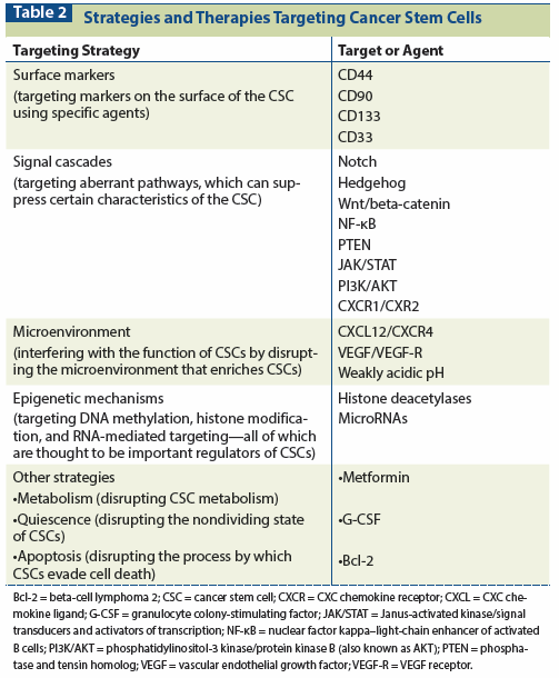 Table 2: Strategies and Therapies Targeting Cancer Stem Cells
