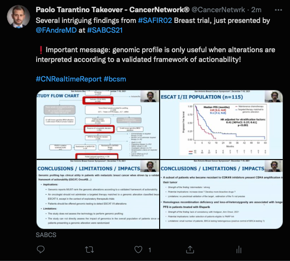 Paolo Tarantino, MD, hosted a Twitter Takeover during the San Antonio Breast Cancer Symposium where he discussed abstract presentations and key takeaways in a #CNRealTimeReport.