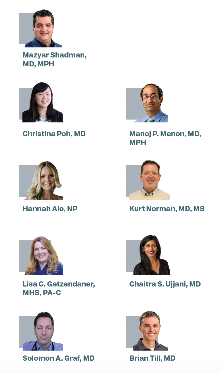 Mazyar Shadman, MD, MPH, medical director at the Bezos Family Immunotherapy Clinic at Fred Hutchinson, led the panel. Also on the panel was Christina Poh, MD, a physician at Fred Hutch and assistant professor in the Division of Hematology and Oncology at the University of Washington School of Medicine; Hannah Alo, NP, a nurse practitioner; Lisa C. Getzendaner, MHS, PA-C, a physician assistant at Fred Hutch and a teaching associate in the Division of Hematology and Oncology at the University of Washington School of Medicine; Solomon A. Graf, MD, an associate professor in the Division of Hematology and Oncology at the University of Washington; Manoj P. Menon, MD, MPH, an associate professor in the Vaccine and Infectious Disease Division and the Clinical Research Division at Fred Hutch; Kurt Norman, MD, MS, a physician at Fred Hutch and clinical assistant professor in the Division of Hematology and Oncology at the University of Washington School of Medicine; Chaitra