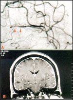 Leptomeningeal metastases frequently coexist with intraparenchymal brain metastases. The signs and symptoms of the intraparenchymal metastases, including seizures, hemiparesis, and aphasias, may add to the symptoms and signs of leptomeningeal disease and present a confusing picture. In addition, leptomeningeal metastases may narrow pial arteries and lead to stroke or focal hemispheric or brain stem deficits on a vascular basis. Leptomeningeal metastases may produce clinical and arteriographic findings similar to central nervous system (CNS) vasculitis (Figure 1).