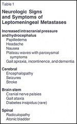 Neurologic Signs and Symptoms of Leptomeningeal Metastases