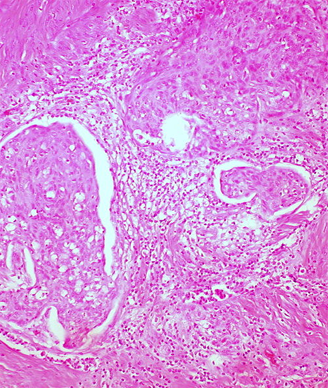 Invasive squamous carcinoma of the cervix, cold knife cone; source: Ed Uthman, Wikimedia Commons