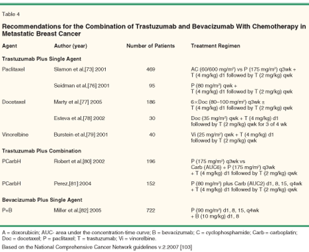 83. Burstein HJ, Keshaviah A, Baron AD, et al: Trastuzumab plus vinorelbine or taxane chemotherapy for HER2-overexpressing metastatic breast cancer: The trastuzumab and vinorelbine or taxane study. Cancer epub ahead of print, July 5, 2007.