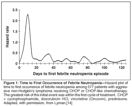 15. Lyman GH, Delgado DJ: Risk and timing of hospitalization for febrile neutropenia in patients receiving CHOP, CHOP-R, or CNOP chemotherapy for intermediate-grade non-Hodgkin lymphoma. Cancer 98:2402-2409, 2003.