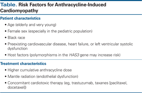 Table. Risk Factors for Anthracycline-Induced Cardiomyopathy
