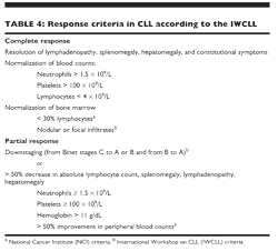 Achieving minimal residual disease-free status The current formal criteria to assess response are based on physical examination, blood counts, and microscopic evaluation of bone marrow (Table 4). Minimal residual disease (MRD) can be evaluated by more sensitive methods such as polymerase chain reaction (PCR) for the IgVH gene or 4-color flow cytometry. In a study of 91 previously treated patients who received alemtuzumab (30 mg thrice weekly for up to 16 weeks), 36% achieved CR, and the overall response rate was 54%. Of the 91 patients, 18 achieved MRD-free status by flow-cytometry evaluation of their bone marrow. Survival was significantly longer for patients who achieved MRD-free status. Overall survival for the 18 patients with MRD-free remission was 84% at 5 years.