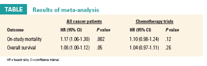 "We cannot answer the question of whether a particular subgroup of cancer patients on chemotherapy is at higher risk. All groups were at risk on our model," he added. Oncology News International spoke with the authors of the meta-analysis, as well experts in all three ESA camps, about their respective takes on the use of the agents and why the current restrictions may go too far.