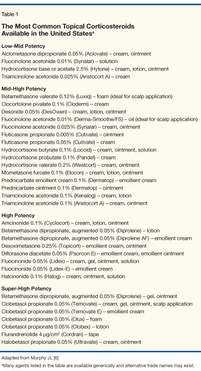 Although some commercially available topical agents are available in 120-g tubes or jars, many do not come in sizes larger than 60 g. When creams are prescribed, awareness of this issue is important so that patients receive an amount that will provide the benefit they need for the required length of time. Most retail pharmacies can place the contents of multiple tubes of product into one conveniently sized ointment jar, rather than dispense three or four separate tubes, depending on the patient's preference.
