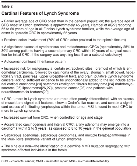 2. Lynch HT, de la Chapelle A: Genomic medicine: Hereditary colorectal cancer. N Engl J Med 348:919-932, 2003.
