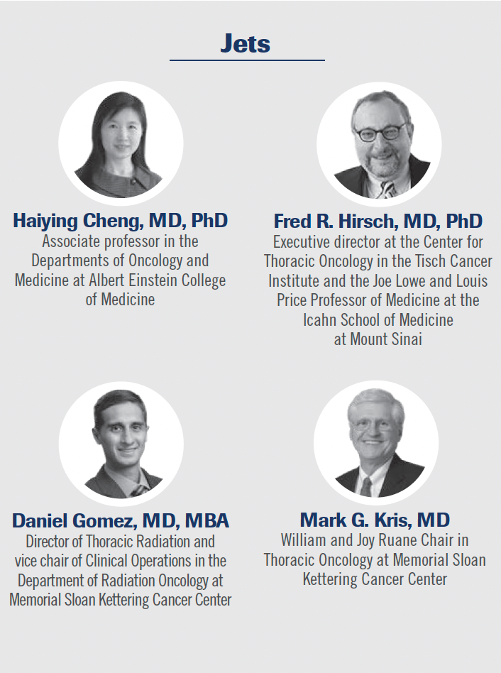 head-to-head to discuss recent data on non–small cell lung cancer (NSCLC). The panelists were split into 2 teams, the Jets and the Giants, and presented data regarding recent advancements and pivotal trial results in the field.