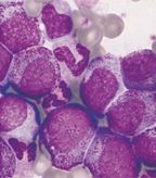 Photomicrograph of chronic myeloid leukemia, also known as myelogenous leukemia, from a blood smear; © Prof. Jean Bonhomme