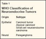 Less commonly, however, paragangliomas can arise in the larynx, nasopharynx, or other head and neck mucosal subsites where the differential diagnosis includes the broader family of neuroendocrine tumors[1,2]- for example, carcinoids, atypical carcinoids, neuroendocrine carcinoma, and small-cell carcinoma (Table 1). It is important to secure an accurate diagnosis in this situation, as management and prognosis vary dramatically.