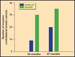 Updated results of the ATAC trial were recently presented, at a follow- up of 47 months.[6] Disease-free survival remained significantly improved in the anastrozole arm, compared to the tamoxifen arm, with an absolute benefit of 2.3% in the overall population and 2.9% in the receptorpositive population (Figure 1).[6] However, the rate of contralateral breast cancer was no longer significantly different between anastrozole- and tamoxifen-treated patients (Figure 2).[6] Despite these findings of improved efficacy with the use of anastrozole, several important issues remain, as outlined by the authors in their review.