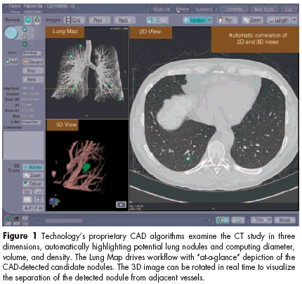 The ImageChecker CAD algorithms examine the complete set of CT imagesgenerated during scanning andsearch for findings with features suggestiveof a solid lung nodule. Thesystem marks these candidate nodulesfor further review by the radiologist.The system workstation is designed to improve radiologist efficiencyin reviewing chest CT examsthrough work-flow-enhancing toolsand through automatic measurementand characterization of the detectedlung nodules.FDA approved the system basedon a clinical study showing that useof the ImageChecker CT CAD system significantly (P = .003) increasedthe detection of actionable (requiringintervention or short-term follow-up)solid lung nodules by calling attentionto potential abnormalities. In thestudy, 15 radiologists independentlyreviewed 90 cases from lung CT scansfirst without the ImageChecker CTsystem and then again with the system.The system had a false markerrate of only two false marks per case,measured on cases with an average ofmore than 170 slices per case.The labeling for the ImageCheckerCT CAD system includes instructionsthat the radiologist should always readthe film before using the CAD systemand never change an original positivereading to a negative one becauseCAD did not identify the nodule.R2 Technology also announcedFDA clearance to market two softwarepackages for use with theImageChecker CT system. One coversthe Temporal Comparison softwaremodule, which provides spontaneousthree-dimensional registrationand the ability to automaticallytrack lung nodule progressionor regression over time. Growth rateis an important indicator of clinicalsignificance, and automating this processhas potential for significant timesavings, the company said.The second clearance is for the FillingDefect Indicator software module,designed to help physicians visualizeand evaluate filling defects inpulmonary arteries, such as pulmonaryemboli.