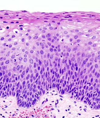 Histopathologic image of a grade 2 cervical intraepithelial neoplasia; source: KGH, Wikimedia Commons