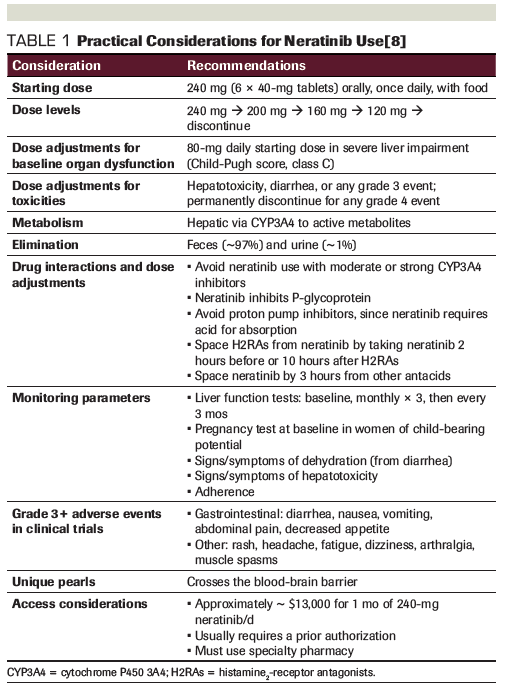 Table 1. Practical Considerations for Neratinib Use