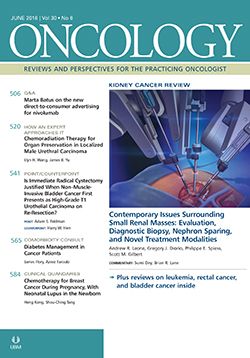 1. Leone AR, Diorio GJ, Spiess PE, Gilbert SM. Contemporary issues surrounding small renal masses: evaluation, diagnostic biopsy, nephron sparing, and novel treatment modalities. Oncology (Williston Park). 2016;30:507-14.