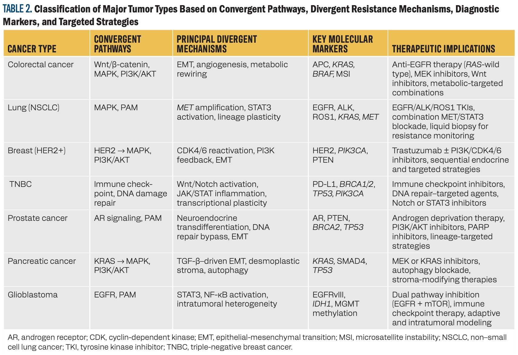 TABLE 2. Classification of Major Tumor Types Based on Convergent Pathways, Divergent Resistance Mechanisms, Diagnostic Markers, and Targeted Strategies