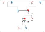 A three-generation pedigree of DZ’s family (see Figure 1) revealed her father with male breast cancer at age 66 and two paternal aunts with breast cancer at age 35 (both deceased). No one in the family had undergone genetic testing and her father was not interested in testing at this time. Testing for BRCA1 and BRCA2 was ordered.