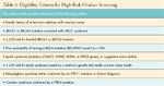Eligibility criteria were established for the high-risk ovarian screening clinic at MDACC to limit patients seen in the clinic to women with a significantly increased risk of ovarian or endometrial cancer based on a deleterious mutation consistent with a hereditary predisposition cancer syndrome or a strongly suggestive family history (Table 3).