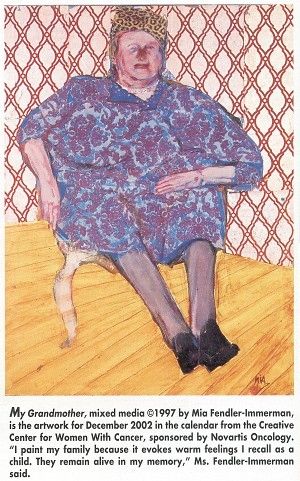 The Center is 7 years old, and this is the fifth year the calendar has been published and sent to doctors and nurses across the country. The demand for it has increased: This year 125,000 calendars were distributed, calendars which have given 60 women artists an opportunity to show images of their artwork to people across the country and to present their statements.