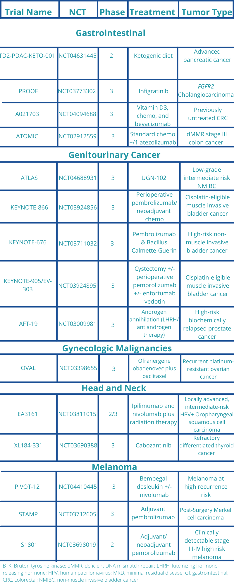 Table 2. Ongoing clinical trials at Atlantic Health Part 2.