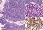 Of the immunoperoxidase antibody panels used in the assessment of SCLC, CD45/Leucocyte Common Antigen (LCA) and a keratin cocktail are perhaps the most useful. In a high-grade “small-cell” tumor with the proper morphologic features on light microscopy, a positive result on keratin staining (often demonstrating a perinuclear punctate pattern) and a negative result on testing for CD45/LCA support the diagnosis of SCLC and exclude lymphoid lesions.[12] Neuroendocrine markers (chromogranin, synaptophysin, CD56/Neural Cell Adhesion Molecule [NCAM]) (Figure 1), and thyroid transcription factor-1 (TTF-1) are also commonly used in potential cases of SCLC.[7] With the use of broad spectrum keratin cocktails, SCLCs yield positive results in 90% to 100% of cases and are positive for TTF-1 in 70% to 90% of cases.[8,10] Tests for individual neuroendocrine markers are positive in 50% to 60% of cases but results, even for a panel of markers, may be negative in a significant minority of cases (10% to 30%).[10] Positive results on tests for neuroendocrine markers are not specific for SCLC. Positive reactions may be seen in up to 30% of NSCLCs (including squamous cell carcinomas, adenocarcinomas, and some large-cell carcinomas). Likewise, testing for TTF-1 may be positive in small-cell carcinomas of non-pulmonary origin. In many cases with high-quality standard hematoxylin and eosin sections and well preserved tumor cells, a reliable diagnosis of SCLC can be made using routine preparations without immuno-morphologic studies.