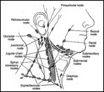 There are approximately 150 to 350 lymph nodes above the clavicles. Since the lymphatic system is embryologically related to the venous system, the lymph nodes are closely related to veins. The cervical lymph nodes have commonly been divided into surgical levels to facilitate discussions of patterns of metastases and types of neck dissection (Figures 1 and 2).