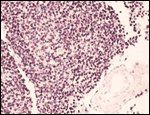 Interestingly, this aggressive lymphoma remains localized in the nasal primary site in many cases (ie, stage IE), with little documented regional nodal spread (15%–30%). Systemic dissemination (stage III or IV) in primary nasal–primary ENKTL is uncommon (< 20%), and the disease tends to metastasize to the skin, gut, ovaries, testis, and muscle.[8] Bone marrow involvement is uncommon (3%), although the incidence may increase with careful marrow examination using Epstein-Barr virus–expressed RNA (EBER) staining (see below). The marrow may show hemophagocytic syndrome, sometimes as the first clue to occult nasal or extranasal disease.[15]