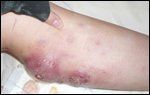 Figure 2: Extranasal NK Lymphoma-Extranasal natural killer (NK)-cell lymphoma presenting as a relentless calf lesion over 3 months, initially masquerading as an insect bite. Despite apparent local disease in a single cutaneous site, marrow staining for Epstein-Barr virus expressed RNA and positron-emission tomography scan showed occult marrow and adrenal spread.