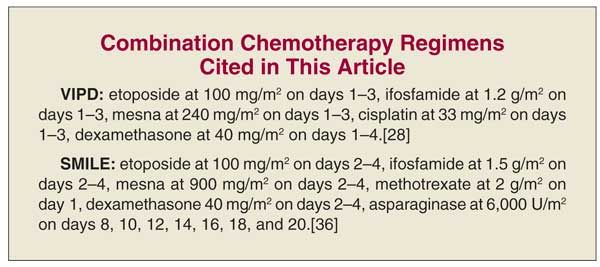 28. Kim SJ, Kim K, Kim BS, et al: Phase II trial of concurrent radiation and weekly cisplatin followed by VIPD chemotherapy in newly diagnosed, stage IE to IIE, nasal, extranodal NK/T-cell lymphoma: Consortium for Improving Survival of Lymphoma study. J Clin Oncol 27:6027-6032, 2009.