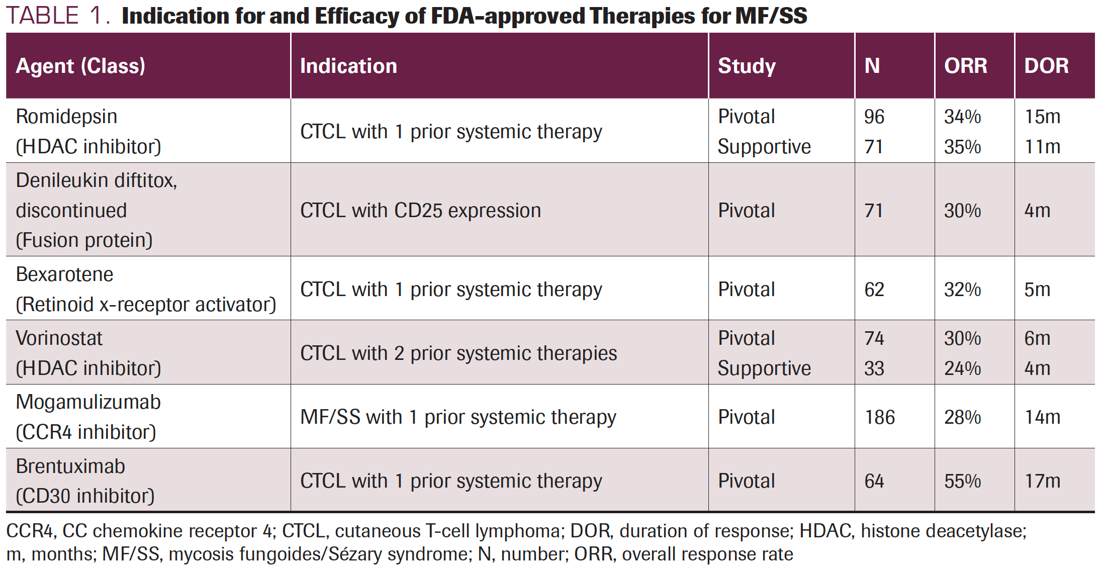 TABLE 1. Indication for and Efficacy of FDA-approved Therapies for MF/SS