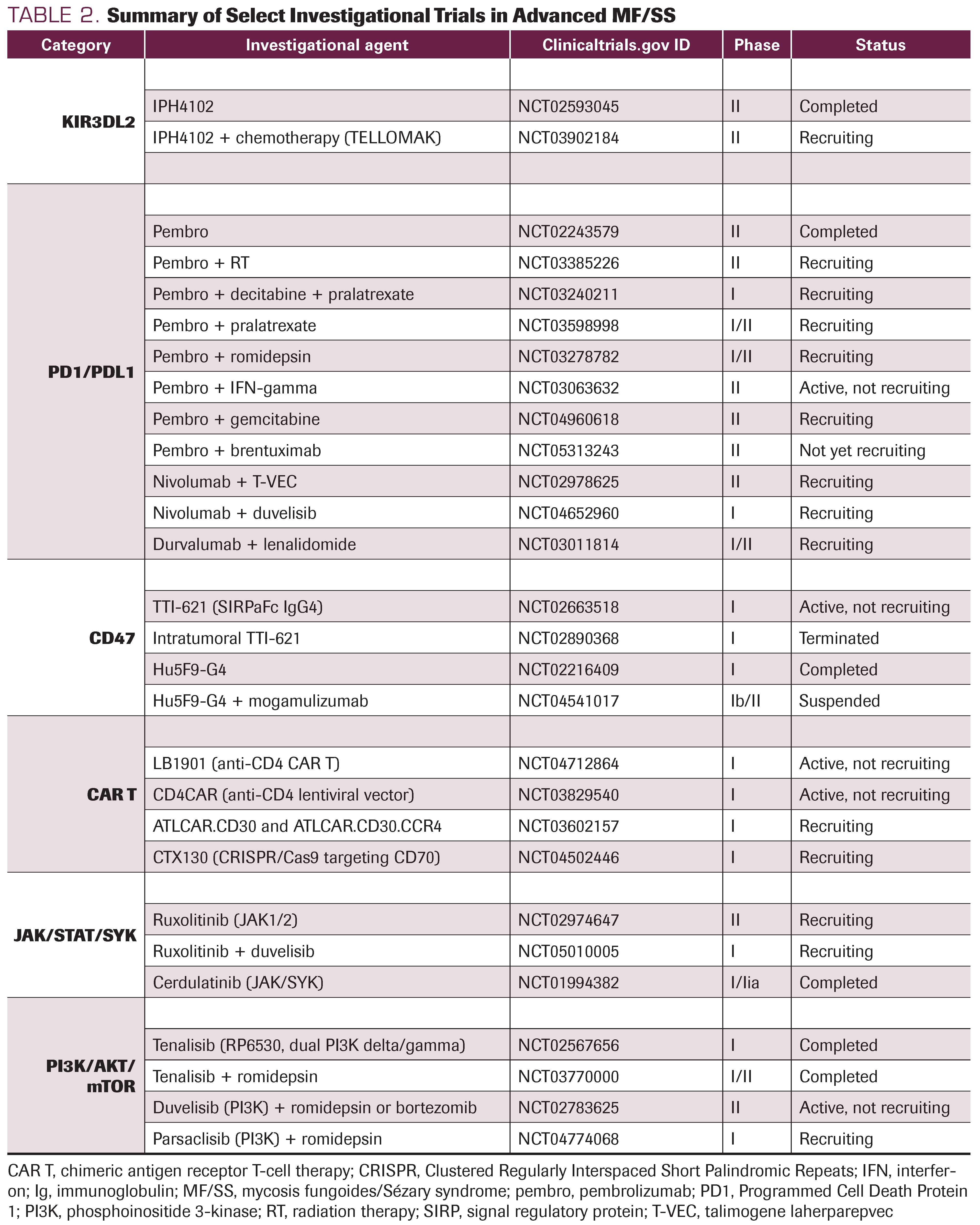 TABLE 2. Summary of Select Investigational Trials in Advanced MF/SS